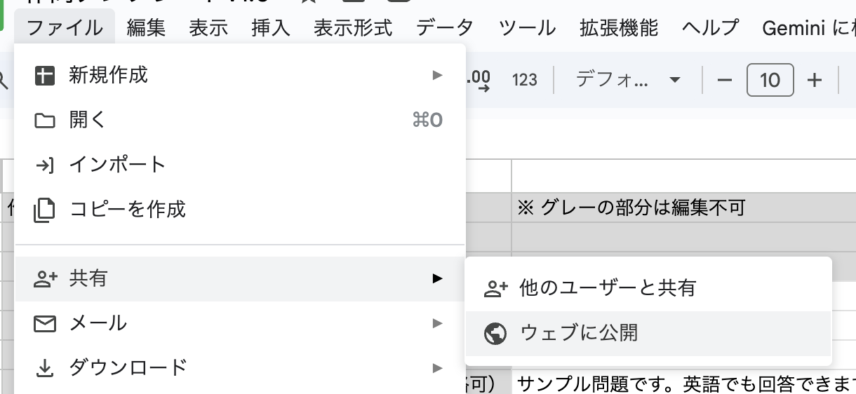「ファイル」メニューから「共有>ウェブに公開」を選択します。