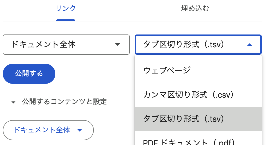 「タブ区切り形式(.tsv)」のリンクを作成します。